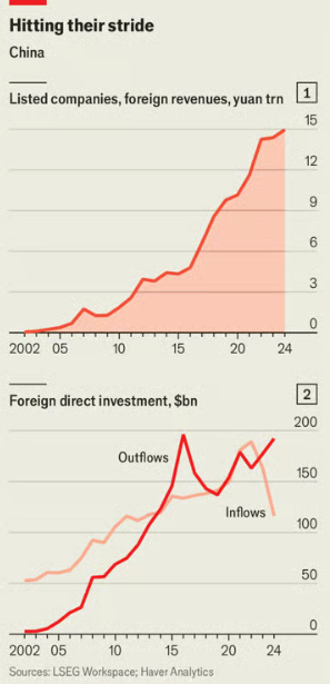 尽管如此,许多有意出海的中国公司仍会获得政府支持,尤其是那些业务不属于敏感领域的企业。政府官员似乎开始意识到全球品牌的力量。中国官媒如今称赞泡泡玛特推出的Labubus毛绒玩具风靡全球,认为这是中国文化影响力增强的象征。