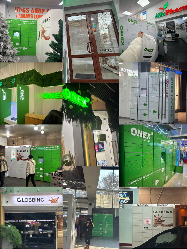 图10 在埃里温大型超市、商场、药店、地铁站随处可见的ONEX和Globbing快递柜