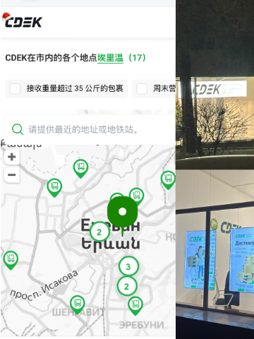 图2 俄罗斯快递公司CDEK在埃里温的取货门店和官方地图分布