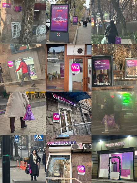 我的这份田野观察最初源于一个很直观的生活发现:在埃里温生活时,我每天都能看到不少人提着紫色的WB购物袋,尤其是在居民区附近——WB的取货点大多开在大道旁的门脸房里,位置醒目,来往取货的人也很多。这让我十分好奇:这个WB究竟是什么?为什么路边会有这么多它的门店,还能看到这么多人提着它的购物袋?询问亚美尼亚朋友后,我才知道WB是当地主流的俄罗斯电商平台WildBerry。后来在亚美尼亚境内旅行时还发现,就算是农村地区,也设有WB的取货点。这种随处可见的电商痕迹,和我原本对亚美尼亚电商零售行业的认知出入很大。